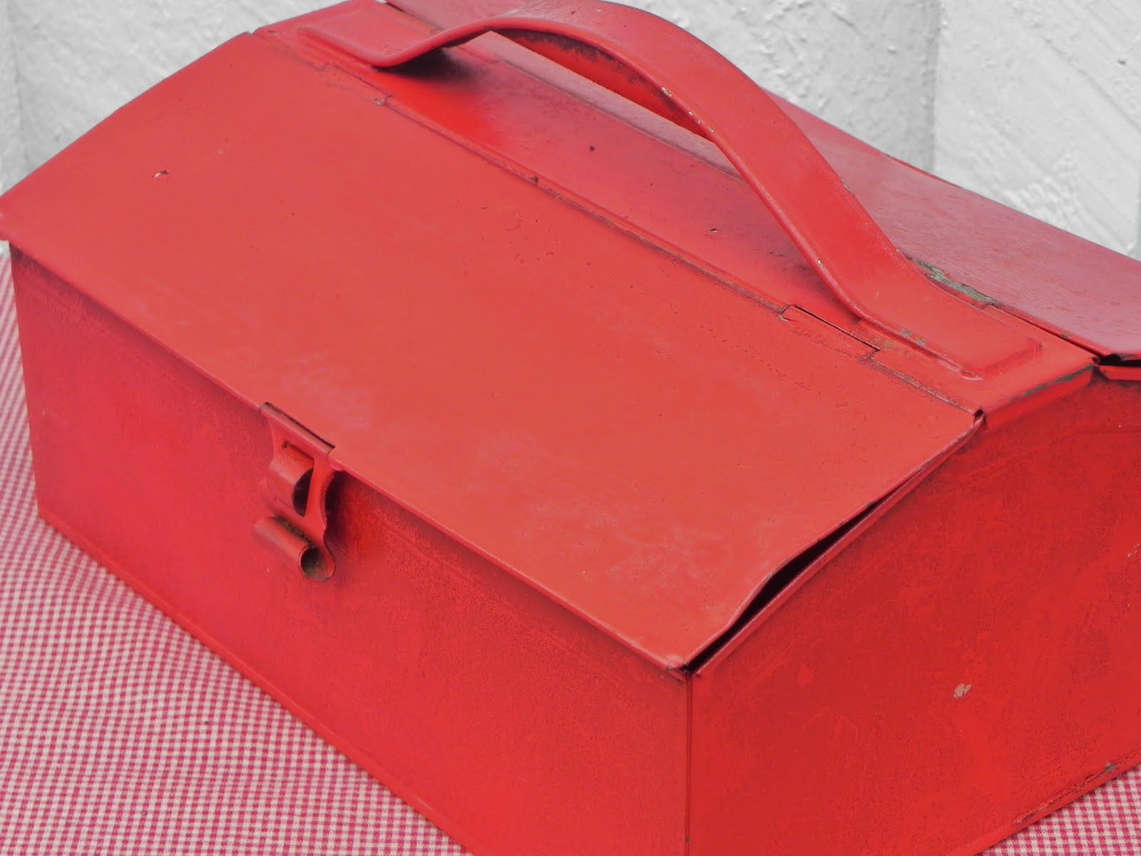 Love the red metal box -- I can picture it filled with tall milk glass vases (inexpensive & easy to find at thrift stores) and pretty flowers.